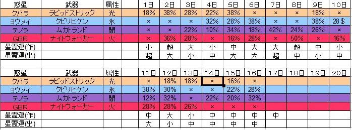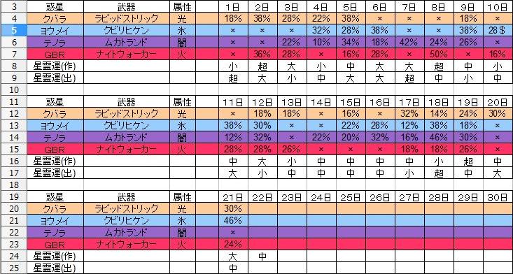 職アクロテクター10→20 フォルテクター0→20 マスターフォース0→3